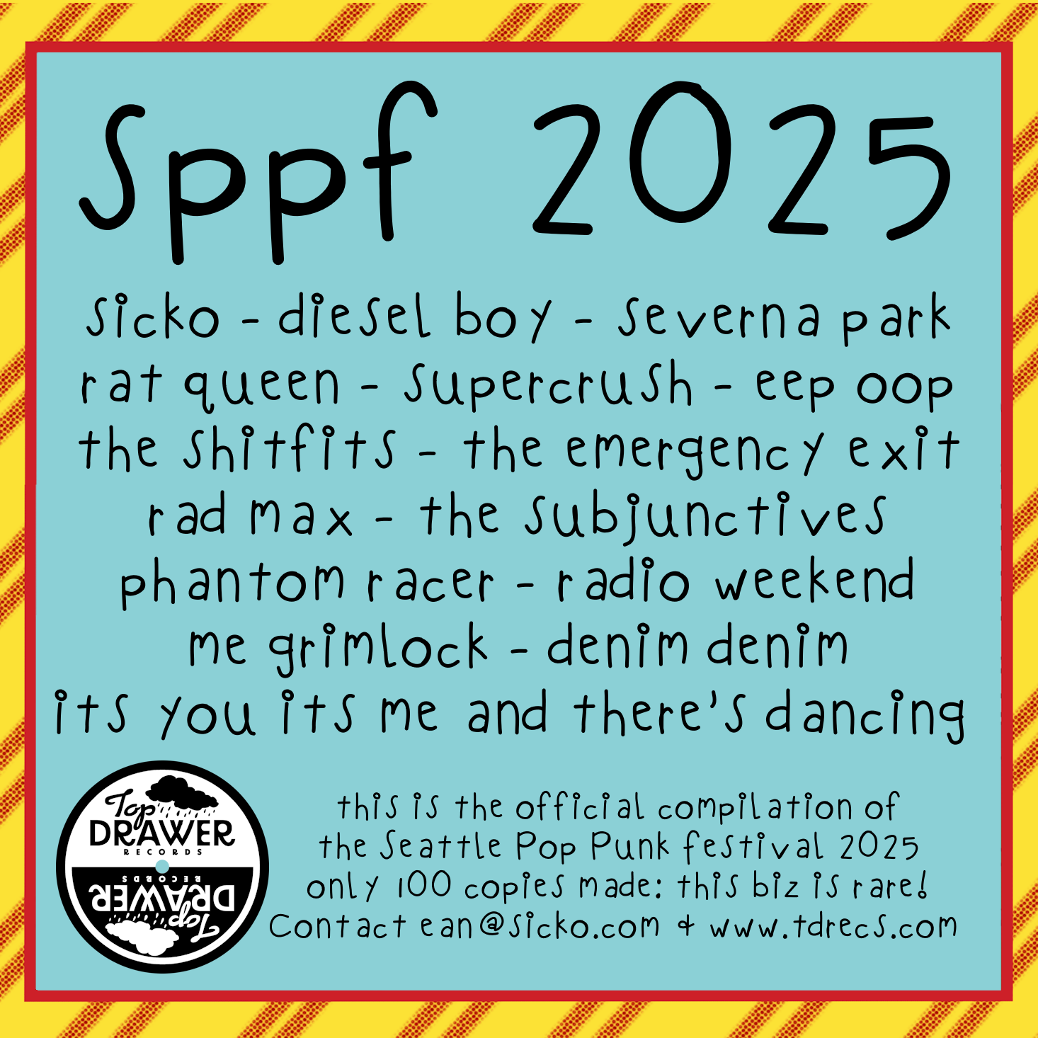 Denim Denim, Diesel Boy, Eep oop, Its You Its Me and there’s Dancing, Me Grimlock, Phantom Racer, Rad Max, Radio Weekend, Rat Queen, Severna park, Sicko, Super Crush, The Emergency Exit, The Shitfits, The Subjunctives